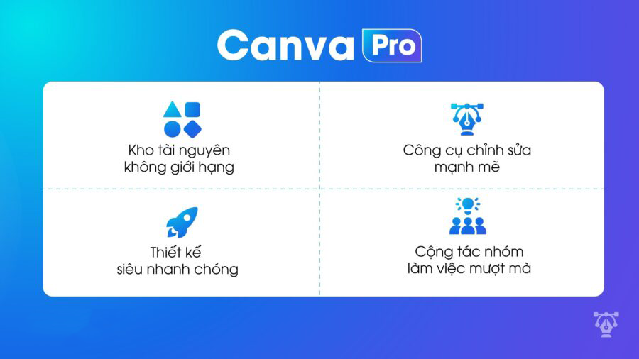 Tính năng đáng chú ý nhất của Canva Pro là kho tài nguyên phong phú và khả năng chỉnh sửa không giới hạn, giúp bạn thỏa sức sáng tạo mọi lúc, mọi nơi.